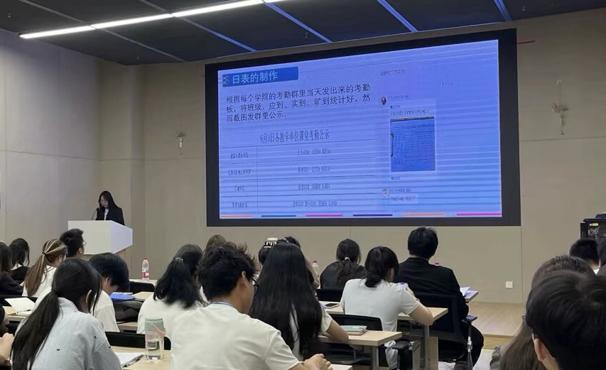 会议第一项,老员工自律委员会的各部门代表依次进行总结汇报,各部门全面地汇报了在过去一年内组织开展的各项活动、完成的工作成果以及工作经验的总结与分析。内容涉及日常的三率考勤、员工宿舍情况的安全检查,以及从“失物‘重逢之约’”到“文理独韵,手作风华”等一系列特色活动。老员工自律委员会的各个部门都在不同领域发挥了自己的力量。