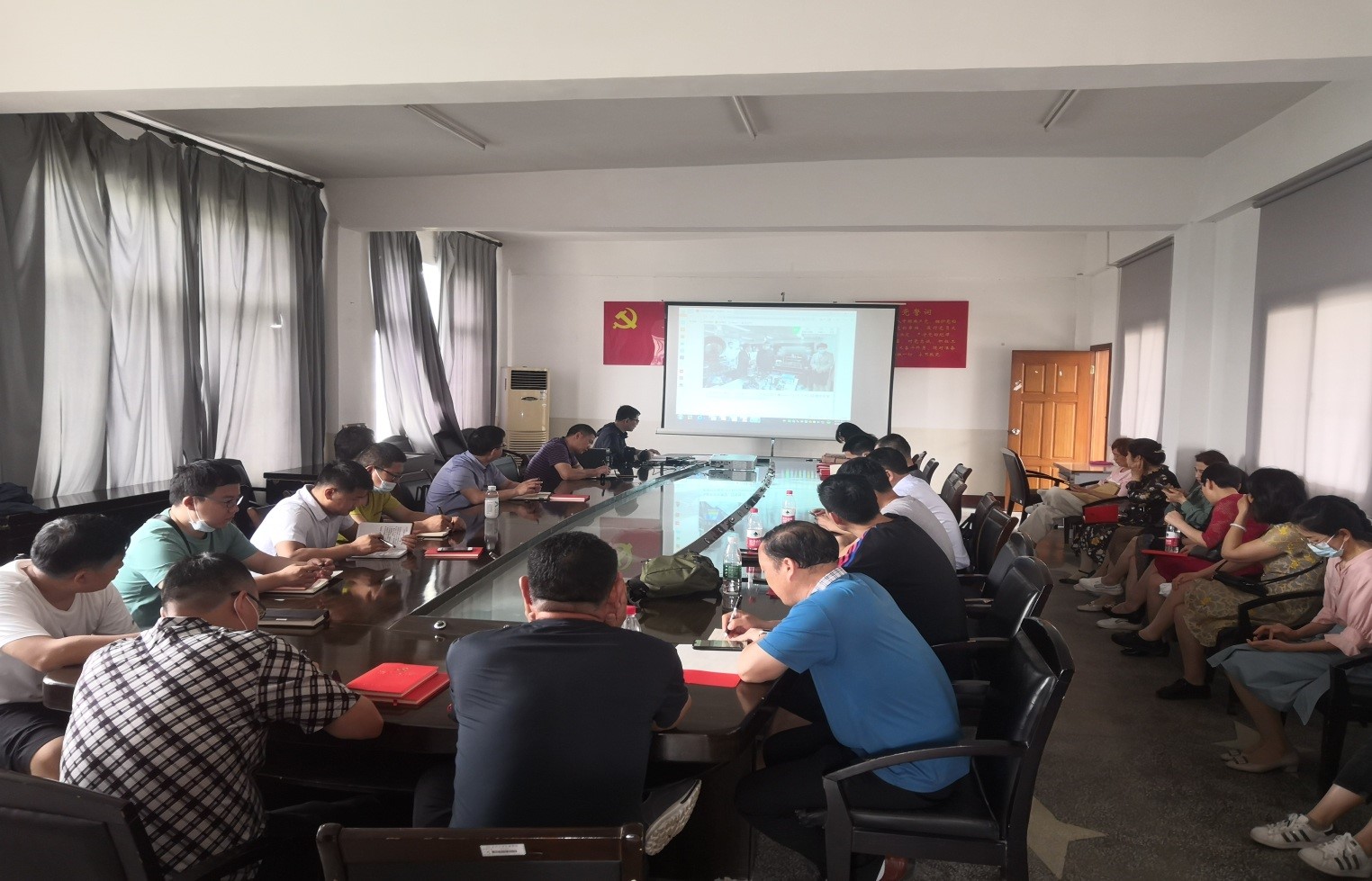 随后,党员老师开展5月支部主题党日活动。让华带领全体党员重温入党誓词,并现场进行投票选举,选出优秀共产党员、优秀党务工作者等先进个人。