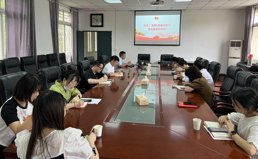 6月30日上午,机关二支部在行政楼会议室开展政治学习及主题党日活动。会议由支部书记石义主持,二支部全体教职工参加。