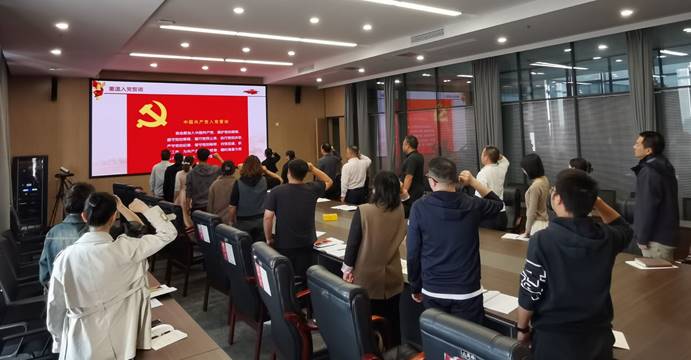 主题党日活动阶段,郭珍珍带领全体党员重温入党誓词,支部书记卢红艳领学《党章》(第一章)。党员老师结合工作实际,围绕深入学习领会党的二十届三中全会精神进行研讨交流。