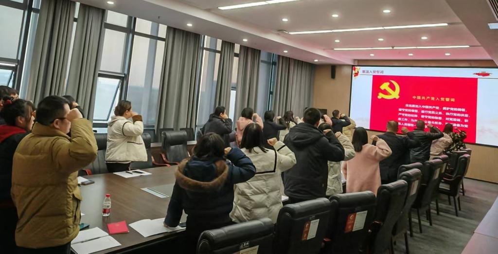 主题党日活动中,郭珍珍带领全体党员重温入党誓词,支部书记卢红艳领学《党章》(第三章)。全体党员结合工作实际,围绕如何坚持守正创新进行研讨交流。