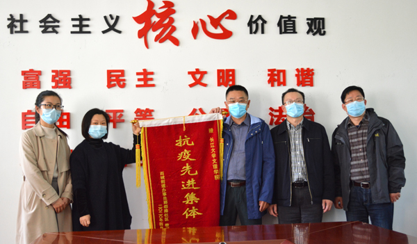今天(4月9日)下午,西城街道党工委副书记王权、西城街道郢都路社区党委书记谭静、党委委员刘悦一行亲自将“抗疫先进集体”锦旗送到了公司,经理王文凯、党委书记朱继平、副经理尹家经代表公司接受锦旗,经理助理郭明虎,公司办公室负责同志参加座谈会。