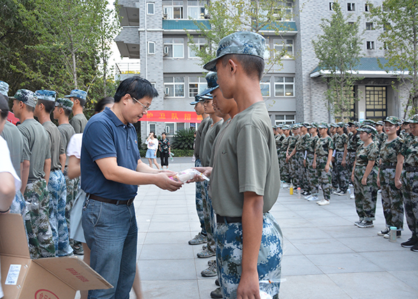 本网讯(记者 刘磊 吴秀丽)今天(9月13日)是一年一度的中秋佳节,党委书记朱继平、副经理尹家经、党委副书记孙细望分别到城中校区、西校区军训场地,慰问正在参加军训的2019级新生、教官和教职工。