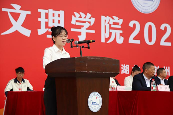 人文与传媒公司中师5222班刘钰同学代表全体在校生发言。她说,大学不仅是学术与实践的修炼场,更是价值观塑造、情感培育的重要阶段。作为新时代的青年,将肩负责任、勇挑重担,坚定接过历史的接力棒,在新征程中踔厉奋发、砥砺前行。