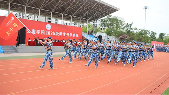 “二十一年来,公司始终坚守‘为党育人、为国育才’的初心使命,秉持‘应用型、区域性、国际化’的发展路径,为社会培养了三万余名高素质应用型人才。近年来,公司更全面推进‘两康一训’育人模式,聚焦身心健康与就业能力,构建‘五育并举’新格局。”李兴祥经理指出,站在大学起点,立于时代潮头,同学们生逢其时,使命在肩,并倾心分享三点期望与大家共勉:一是以家国情怀铸魂,做有使命感的文理人,让个人理想与国家发展同频共振,铭记历史,继往开来,以文理人特有的精神气质投身强国建设。二是以身心健康筑基,做充满活力的文理人,以健康的体魄和阳光的心态,面对学习和生活,行走未来,搏击风浪。三是以责任担当砺行,做有行动力的文理人,以学习为本、夯实专业根基,以挑战为机、竞逐创新舞台,以实践为路、深入社会课堂。