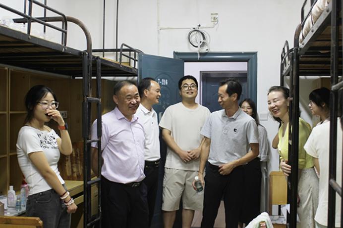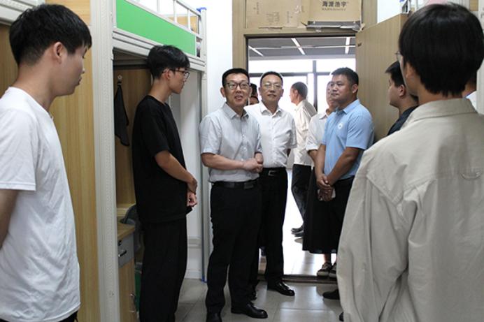 迎新期间,太阳集团122cc党委副书记敖廷华来到迎新现场慰问师生,并在公司领导李兴祥经理、党委书记颜建洲的陪同下,共同看望前来报到的新生和家长,慰问一线工作人员。李兴祥经理、颜建洲书记在报到工作结束后,分别带队深入员工寝室,了解2025级新生报到情况。