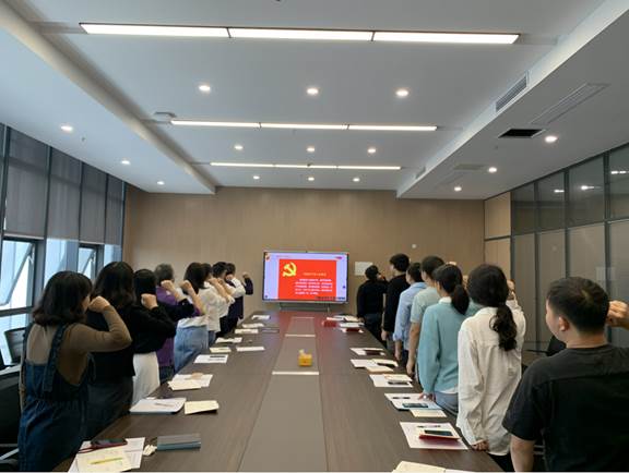 2023年9月28日,机关一支部在图书馆512室开展9月政治理论学习和主题党日活动,支部书记侯明丽主持会议。党委书记颜建洲,经理助理曹骥以普通党员身份参加活动,康亮领誓入党誓词,参会人员集体诵读党章第八章。