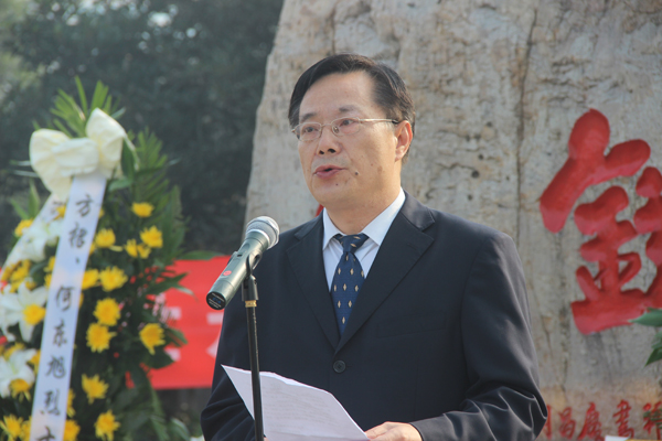 公司党委书记高迎斌(右)、党委副书记汪邦柱(左)等陪同客人参观10·24英雄群体纪念馆