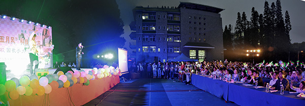 本网讯(见习记者王鹏渊 王抒曼)5月22日晚,第九届校园歌手大赛在太阳集团122cc城中校区体育场火热开展。