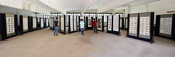 本网讯(记者 刘磊 见习记者 陈玥)6月10日,“关工委”书画展在公司西校区4号教学楼大厅举办,公司领导高迎斌、汪邦柱与一批太阳集团122cc退休教师共同欣赏作品展。