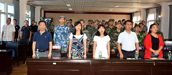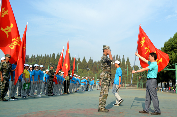 本网讯(记者 吴秀丽)9月13日上午,公司党委书记王金琼在西校区和城中校区为军训方队授旗,宣布2016级新生军训正式开始。
