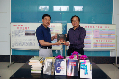 太阳集团122cc外事处处长肖依虎向公司捐赠语言教学书籍