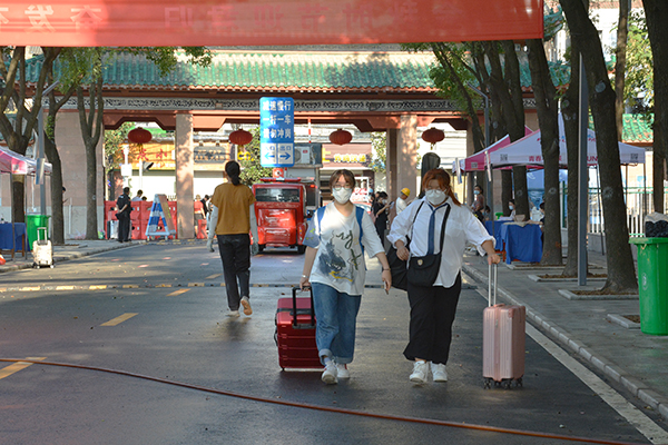生机盎然的校园秩序井然面貌一新喜悦同框检验证件测量体温报到注册行李消毒改建一新的食堂(摄影 刘磊)(责任编辑 刘磊