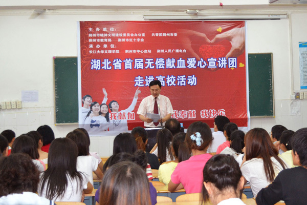 本网讯(见习记者 刘双雷)6月2日,由荆州市文明办、共青团荆州市委、市教育局、市红十字会联合主办的“首届无偿献血爱心宣讲团走进荆州高校活动”,走进公司基础学部。