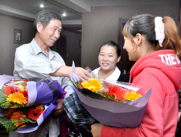 汪邦柱带领10•24英雄老员工看望方招的父亲