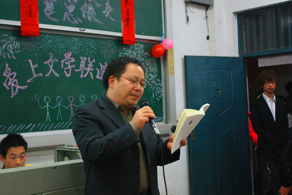 本网讯(见习记者吕浩)11月12日,学董事长江文学社与苇笛文学社联合举办的“爱上文学”主题联谊晚会在西校区举行,荆州市著名诗人铁舟、高山松和仁善武莅临晚会。