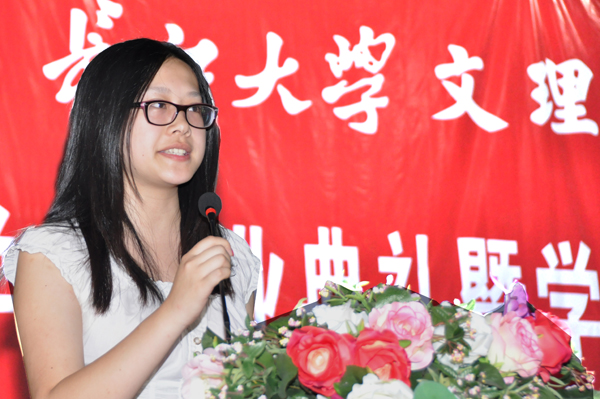 大家好!我是管理学部会计5083班的祝薇,很荣幸能代表2012届毕业生在这里发言。