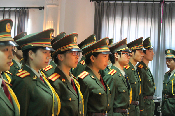 本网讯(见习记者 邹青青)10月17日,公司国旗护卫队在3教408举行了庄严的旗手交接仪式,第九届国旗护卫队正式成立。
